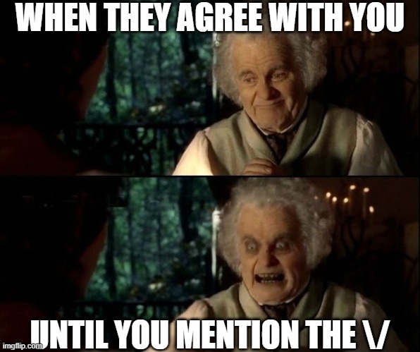 LOTR The Fellowship of the Ring - Farewell Dear Bilbo, Gandalf intercepts Bilbo in Bag End when he is about to leave the Shire for good, and sees that Bilbo has started to become . If you discover this site serviceableness, please support us by sharing this posts to your preference social media accounts like Facebook, Instagram and so on or you can also Get this blog page with the title Bilbo Scary Face Meme by using Ctrl + D for gadgets a laptop with a Windows operating system or Command + D for laptops with an Apple operating system. If you use a smartphone, you can also use the drawer menu of the browser you are using. Whether it's a Windows, Mac, iOS or Android operating system, you will still be able to bookmark this website.