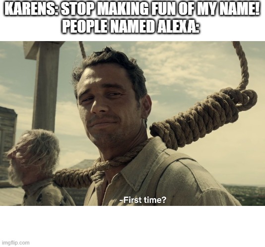 Watch The Ballads of Buster Scruggs on Netflix - About from - James Franco "First time?" refers to a memorable quote by an unnamed cowboy character on the gallows in the 2018 western film The Ballad of Buster Scruggs, as portrayed by American actor James Franco. Since the film's release in November 2018, a screen-captured image of the scene has been used in image macros as the punchline to jokes about one's inexperience. Origin On September 12th, 2018, Netflix uploaded a trailer for the film The Ballad of Buster Scruggs to YouTube. At the end of the trailer, there is a clip of the James Franco asking a crying man on the gallows, "First time?" The post received more than 1.7 million views in less than three months. Two months later, on November 25th, Twitter user @Ayub_dz posted a screen shot of the moment with the caption, "When you're hiding from a school shooter and the foreign exchange student starts crying." The tweet received more than 37,000 retweets and 131,000 likes in five days.